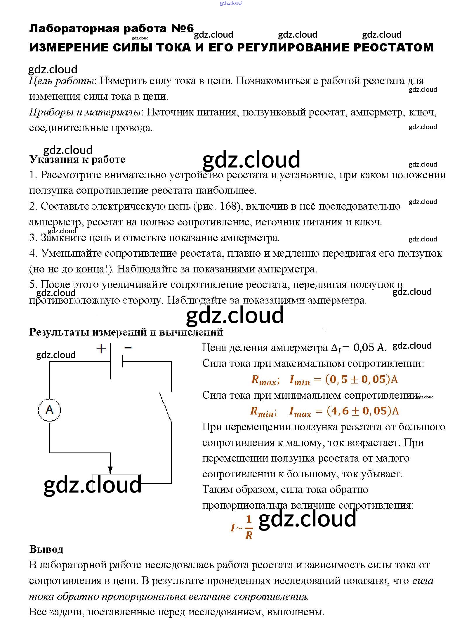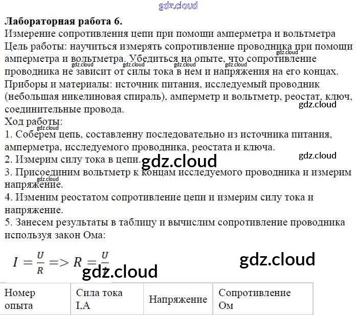 Ответ на задание ЛР-6 Учебник Физика за 8 (восьмой) класс Перышкин Вертикаль 2014