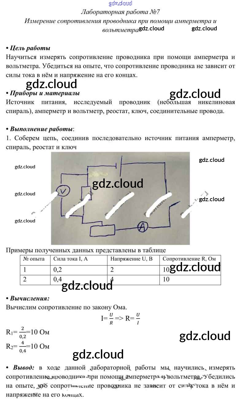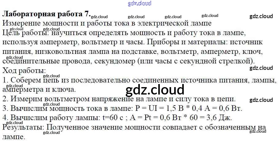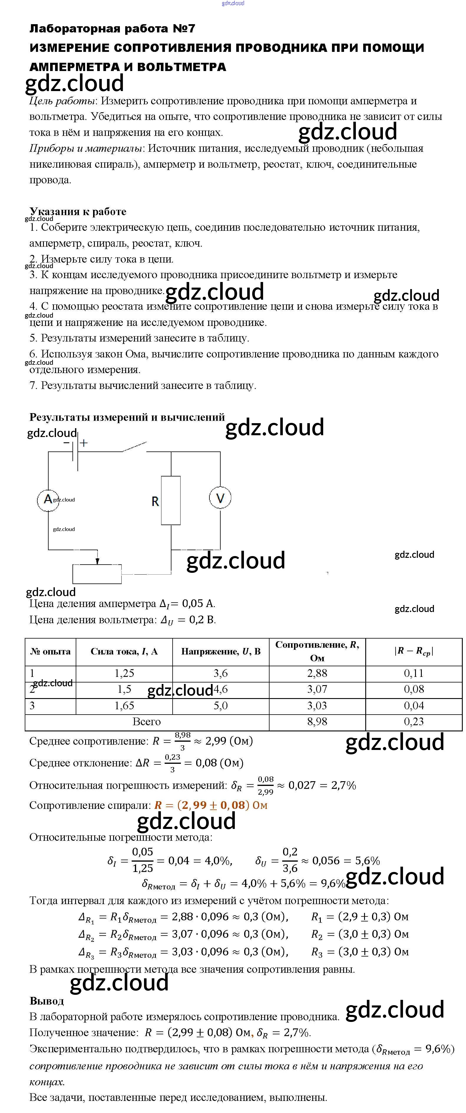 Ответ на задание ЛР-7 Учебник Физика за 8 (восьмой) класс Перышкин Вертикаль 2014