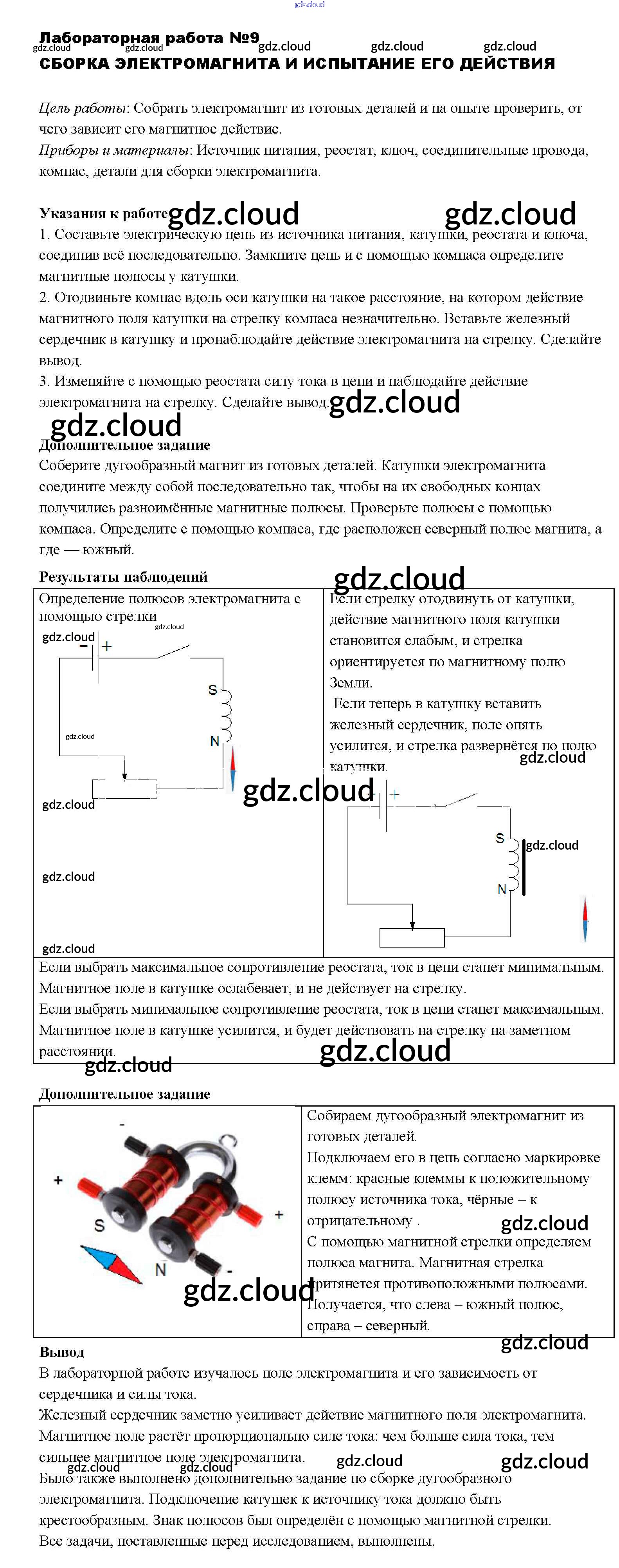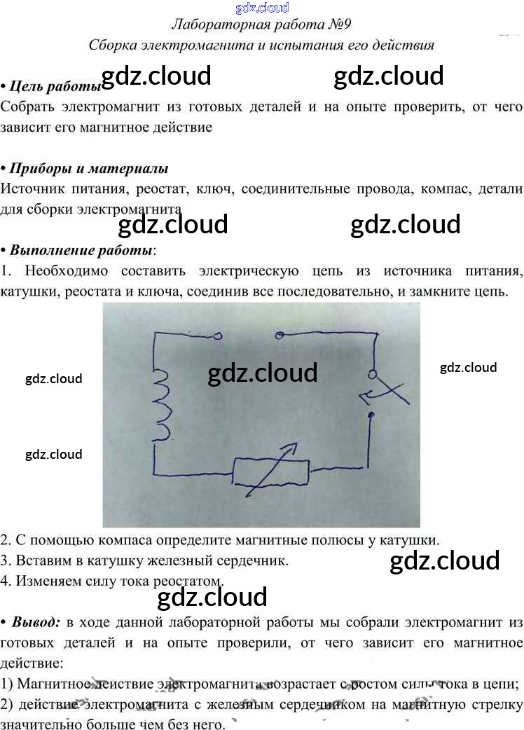 Ответ на задание ЛР-9 Учебник Физика за 8 (восьмой) класс Перышкин Вертикаль 2014