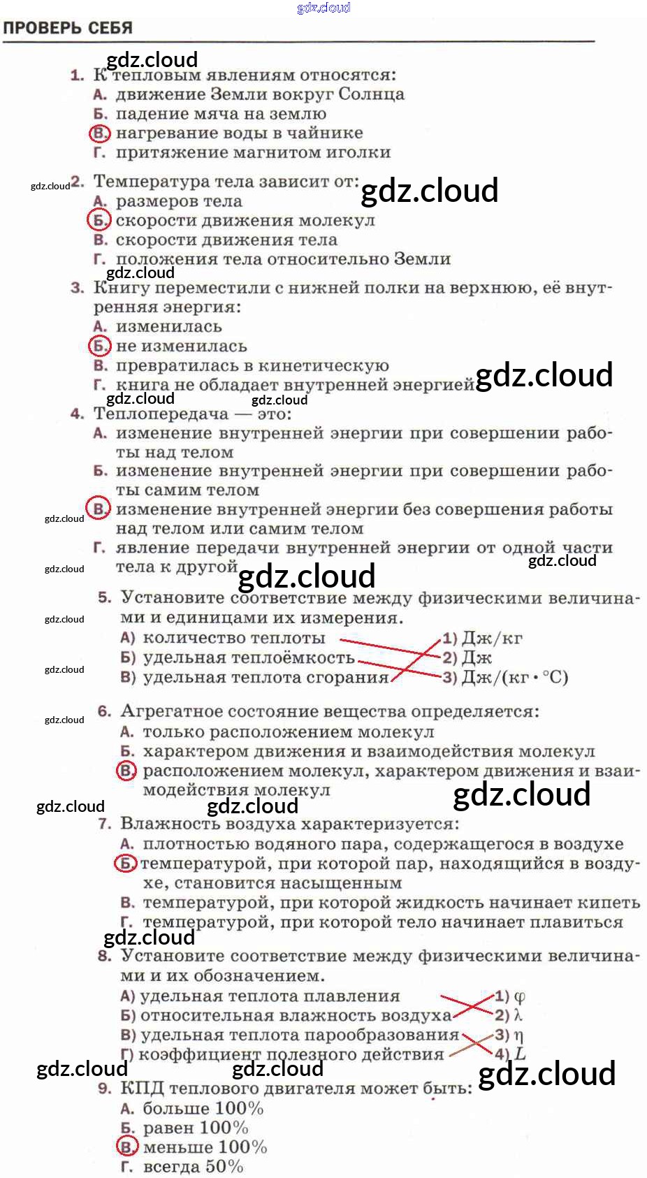 Проверь себя Ответы к новому изданию (бело-красный учебник) по Физике 8 класс Учебник Перышкин Вертикаль Дрофа