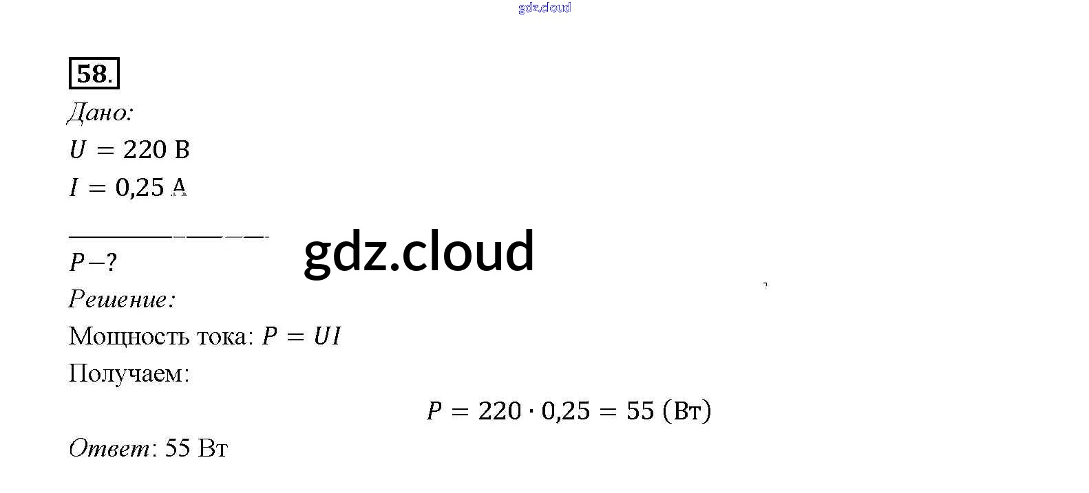 Ответ на задание 58 Учебник Физика за 8 (восьмой) класс Перышкин Вертикаль 2014