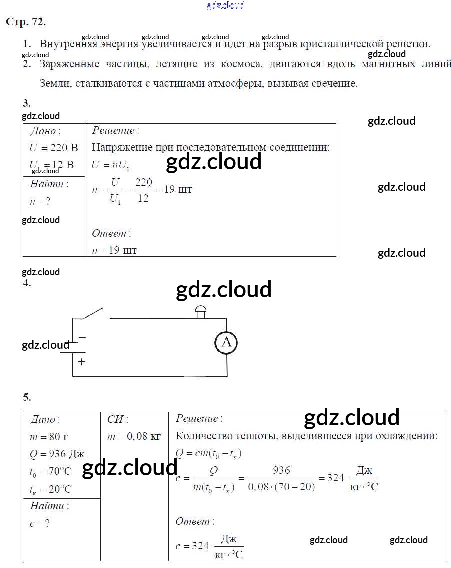 Ответ на задание 72 Тетрадь-экзаменатор Физика за 8 (восьмой) класс Жумаев Сферы 2012 ФГОС онлайн и без номера телефона.