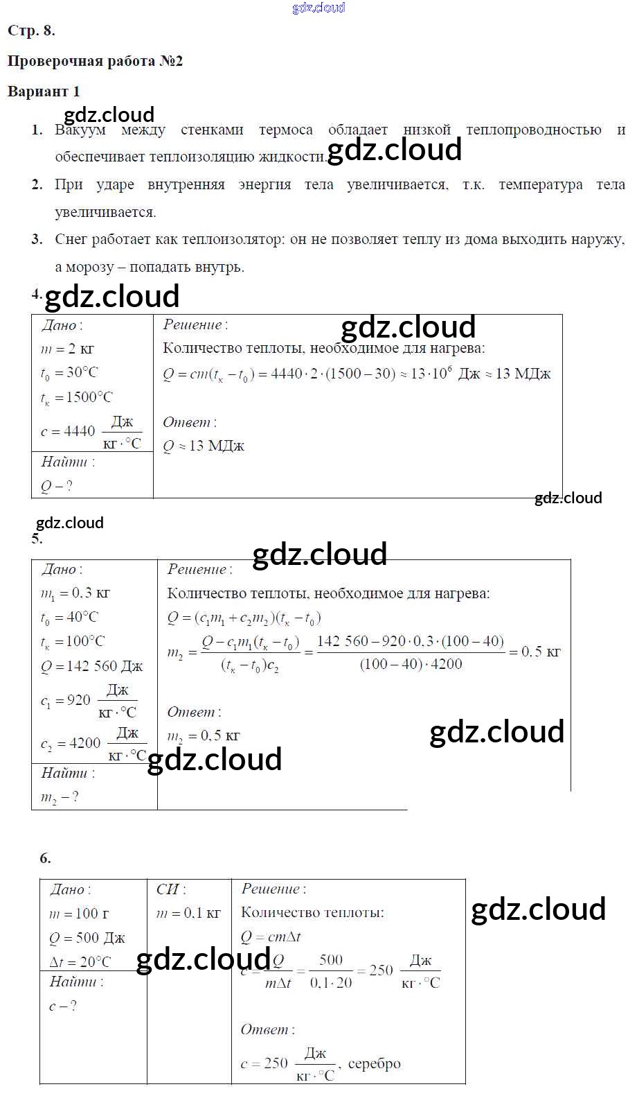 Ответ на задание 8 Тетрадь-экзаменатор Физика за 8 (восьмой) класс Жумаев Сферы 2012 ФГОС онлайн и без номера телефона.
