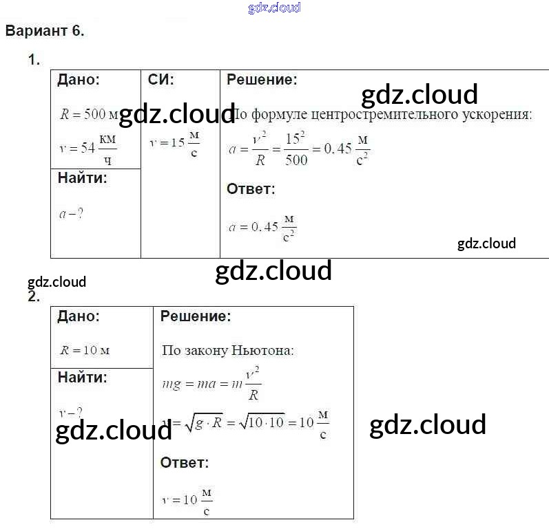 СР-10. Варианты Ответы к Самостоятельным работам по Физике 9 класс Дидактические материалы Марон УМК Дрофа