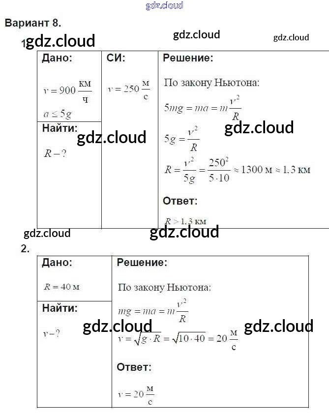 СР-10. Варианты Ответы к Самостоятельным работам по Физике 9 класс Дидактические материалы Марон УМК Дрофа