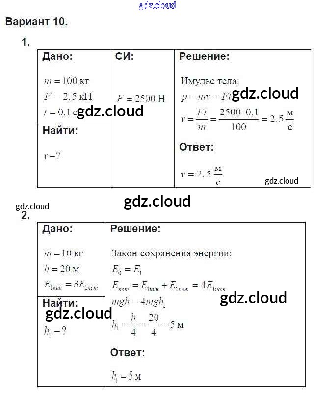 Ответ на задание 10 Дидактические материалы Физика за 9 (девятый) класс Марон УМК 2019
