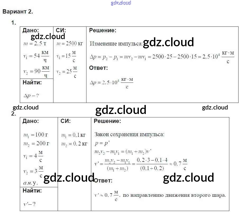 Ответ на задание 2 Дидактические материалы Физика за 9 (девятый) класс Марон УМК 2019