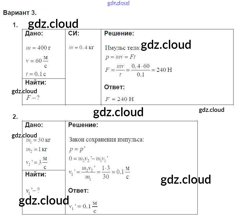 Ответ на задание 3 Дидактические материалы Физика за 9 (девятый) класс Марон УМК 2019