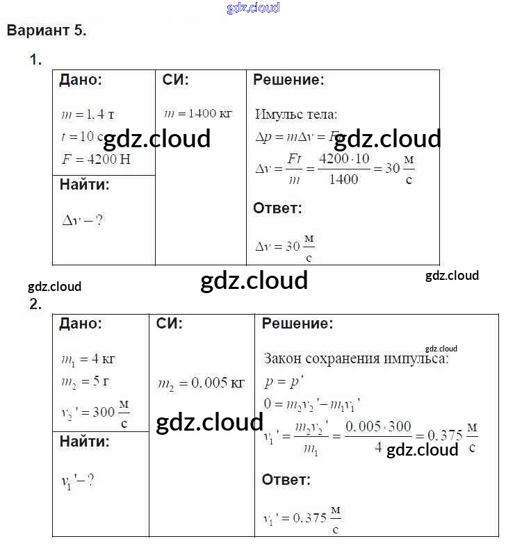 Ответ на задание 5 Дидактические материалы Физика за 9 (девятый) класс Марон УМК 2019