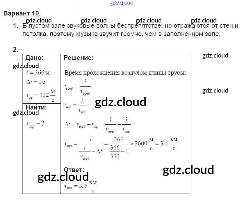 Ответ на задание 10 Дидактические материалы Физика за 9 (девятый) класс Марон УМК 2019