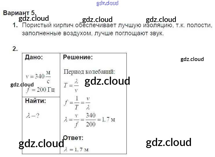 Ответ на задание 5 Дидактические материалы Физика за 9 (девятый) класс Марон УМК 2019