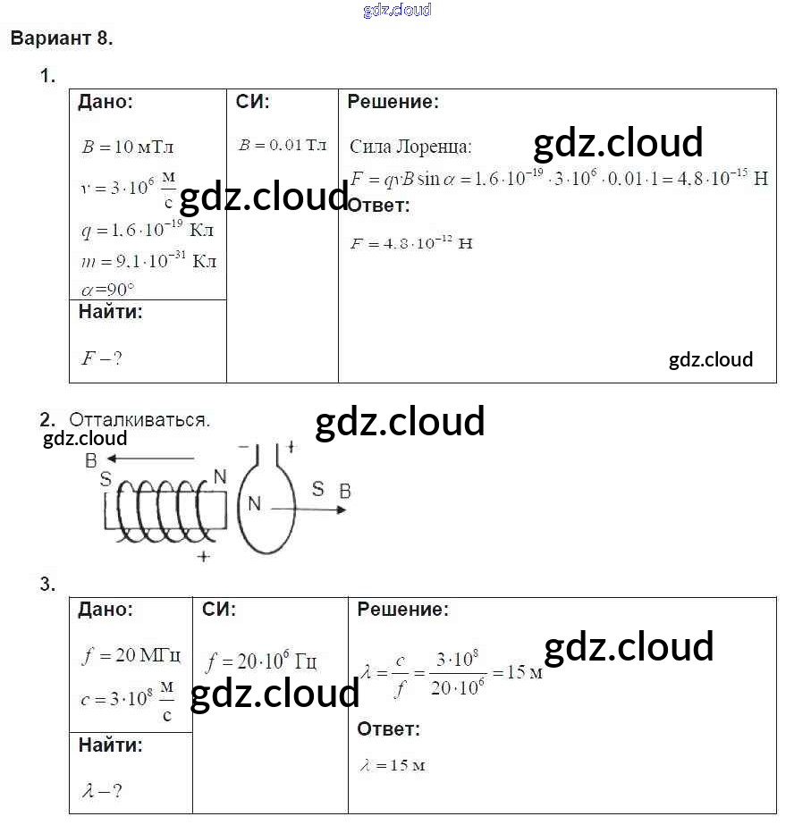 Ответ на задание 8 Дидактические материалы Физика за 9 (девятый) класс Марон УМК 2019