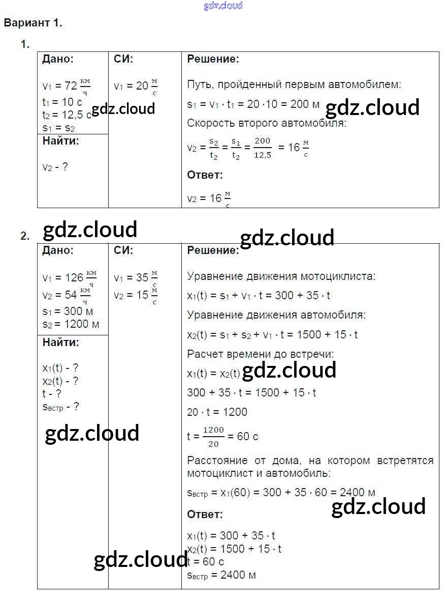 Ответ на задание 1 Дидактические материалы Физика за 9 (девятый) класс Марон УМК 2019