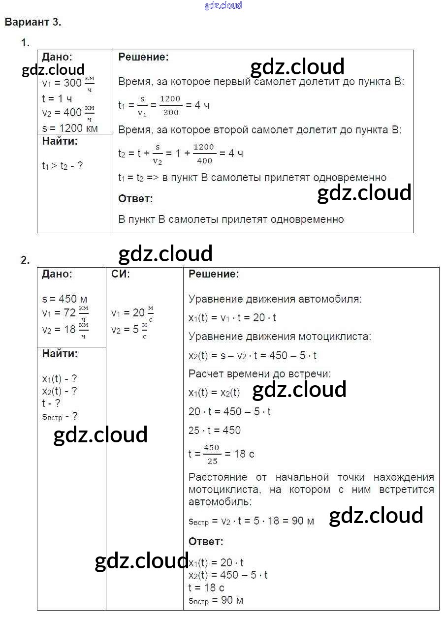 Ответ на задание 3 Дидактические материалы Физика за 9 (девятый) класс Марон УМК 2019