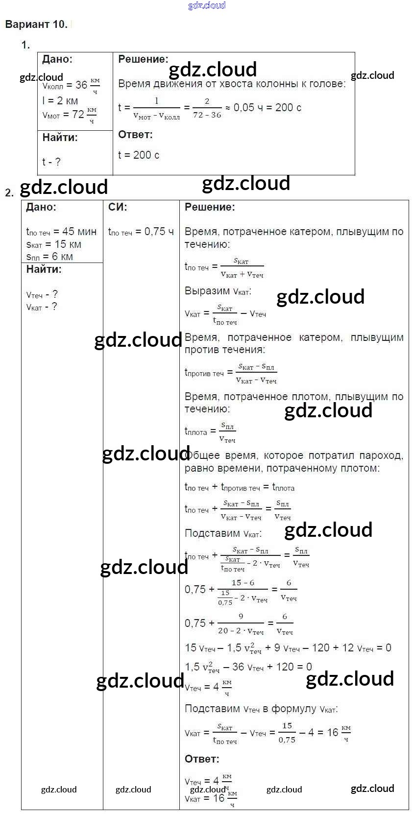 Ответ на задание 10 Дидактические материалы Физика за 9 (девятый) класс Марон УМК 2019