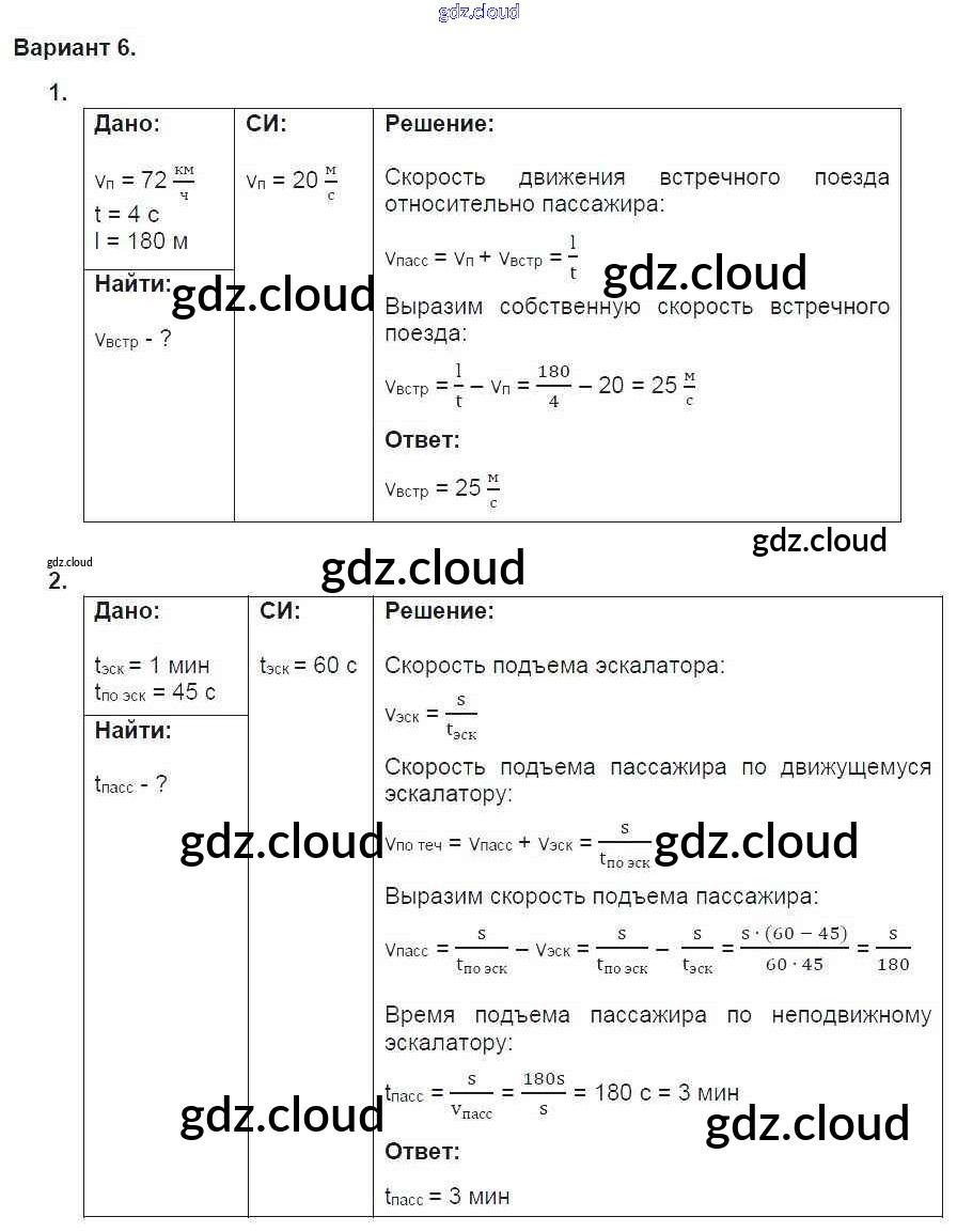 Ответ на задание 6 Дидактические материалы Физика за 9 (девятый) класс Марон УМК 2019