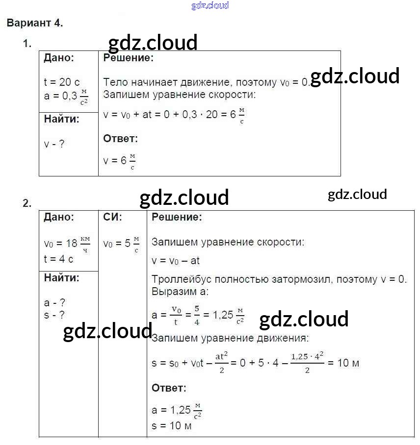 Ответ на задание 4 Дидактические материалы Физика за 9 (девятый) класс Марон УМК 2019