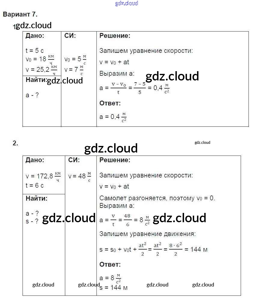 Ответ на задание 7 Дидактические материалы Физика за 9 (девятый) класс Марон УМК 2019
