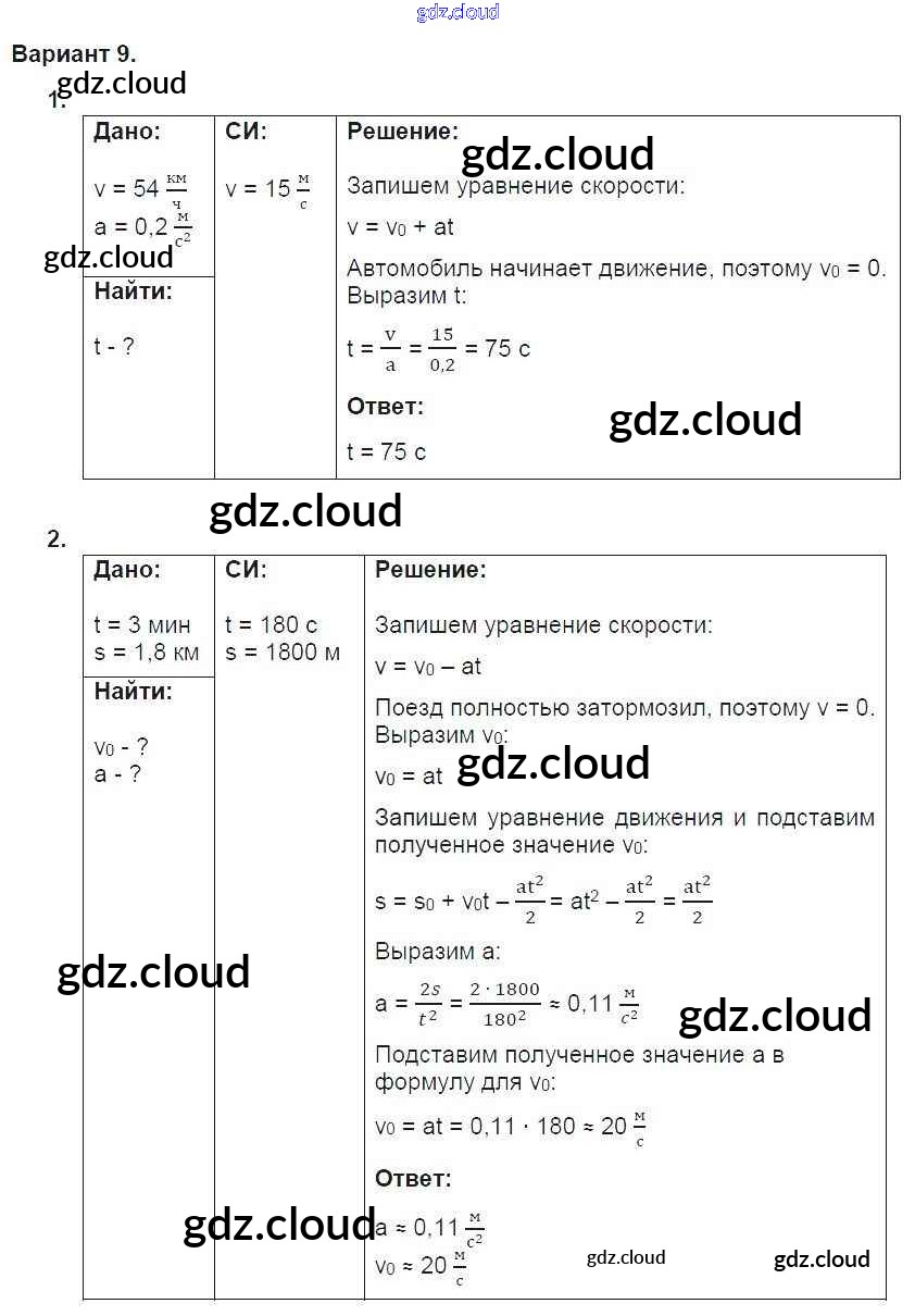 Ответ на задание 9 Дидактические материалы Физика за 9 (девятый) класс Марон УМК 2019