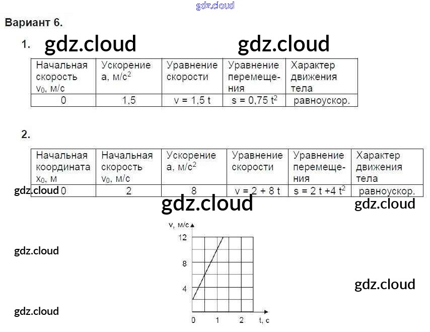 СР-6. Варианты Ответы к Самостоятельным работам по Физике 9 класс Дидактические материалы Марон УМК Дрофа