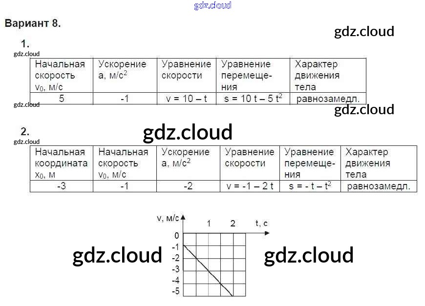 СР-6. Варианты Ответы к Самостоятельным работам по Физике 9 класс Дидактические материалы Марон УМК Дрофа