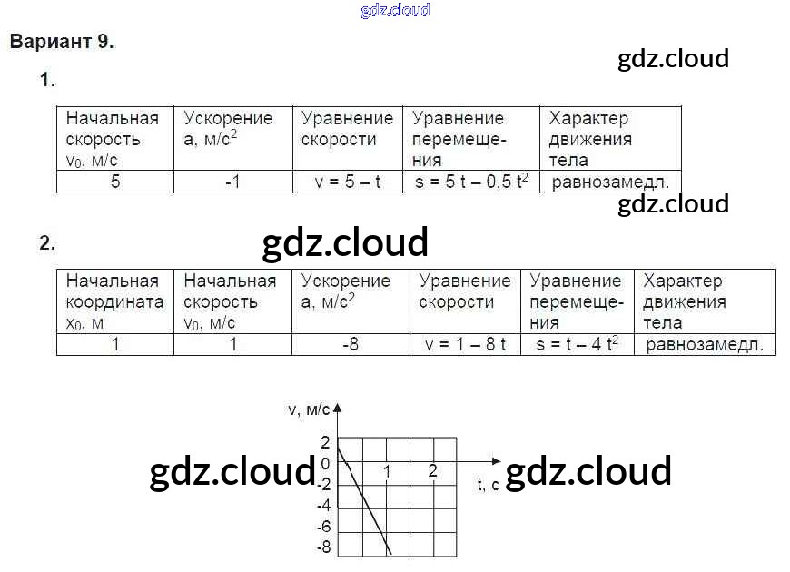 Ответ на задание 9 Дидактические материалы Физика за 9 (девятый) класс Марон УМК 2019
