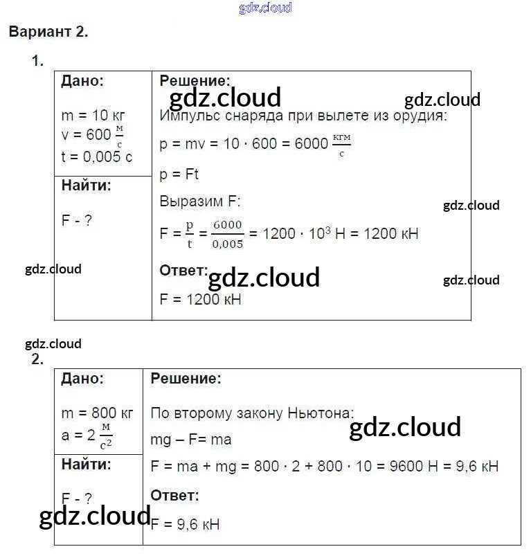 Ответ на задание 2 Дидактические материалы Физика за 9 (девятый) класс Марон УМК 2019