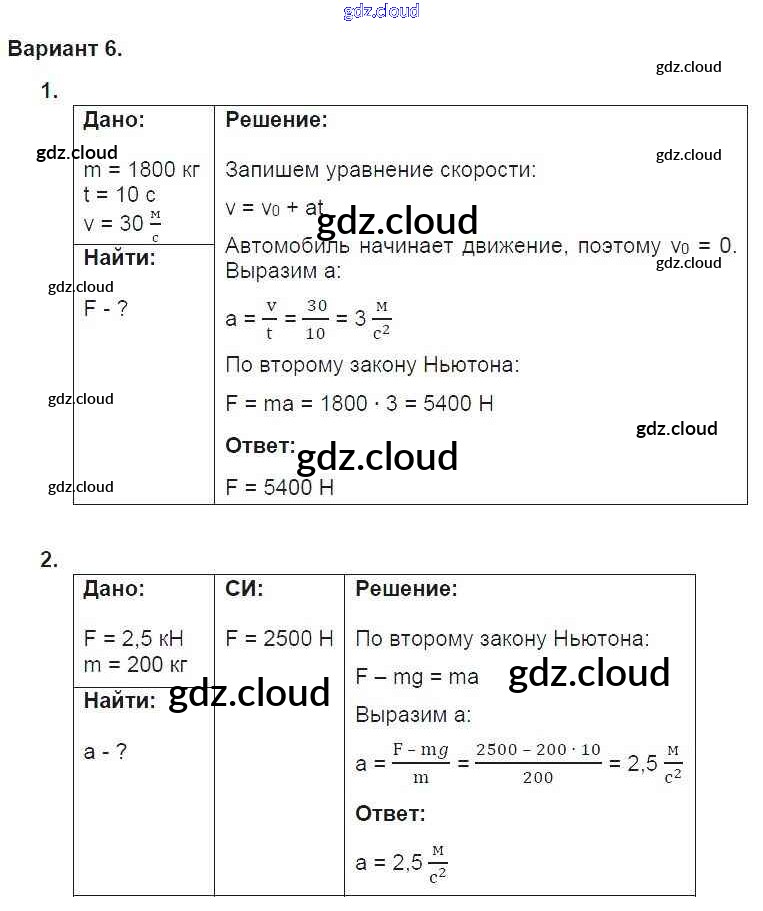 Ответ на задание 6 Дидактические материалы Физика за 9 (девятый) класс Марон УМК 2019