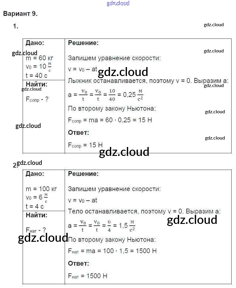 Ответ на задание 9 Дидактические материалы Физика за 9 (девятый) класс Марон УМК 2019