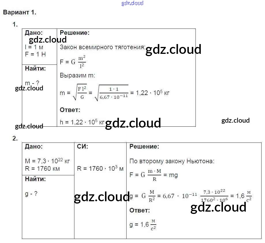 Ответ на задание 1 Дидактические материалы Физика за 9 (девятый) класс Марон УМК 2019