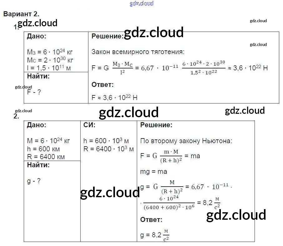 Ответ на задание 2 Дидактические материалы Физика за 9 (девятый) класс Марон УМК 2019