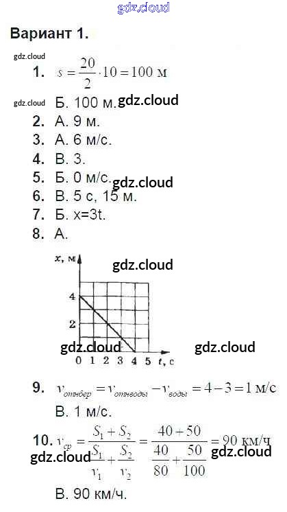 Тест 1. Варианты Ответы к Тестам для самоконтроля по Физике 9 класс Дидактические материалы Марон УМК Дрофа
