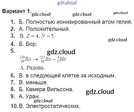 Тест 10. Варианты Ответы к Тестам для самоконтроля по Физике 9 класс Дидактические материалы Марон УМК Дрофа