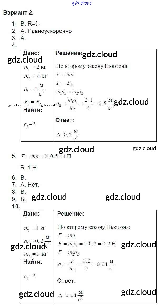 Тест 3. Варианты Ответы к Тестам для самоконтроля по Физике 9 класс Дидактические материалы Марон УМК Дрофа