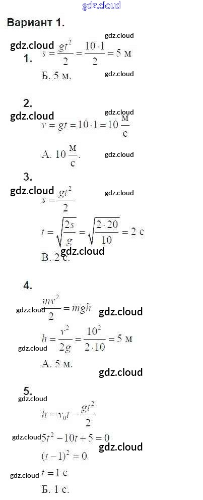 Тест 4. Варианты Ответы к Тестам для самоконтроля по Физике 9 класс Дидактические материалы Марон УМК Дрофа