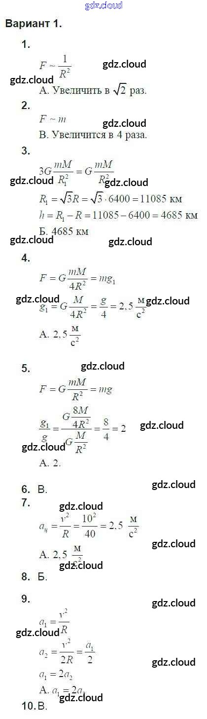 Тест 5. Варианты Ответы к Тестам для самоконтроля по Физике 9 класс Дидактические материалы Марон УМК Дрофа