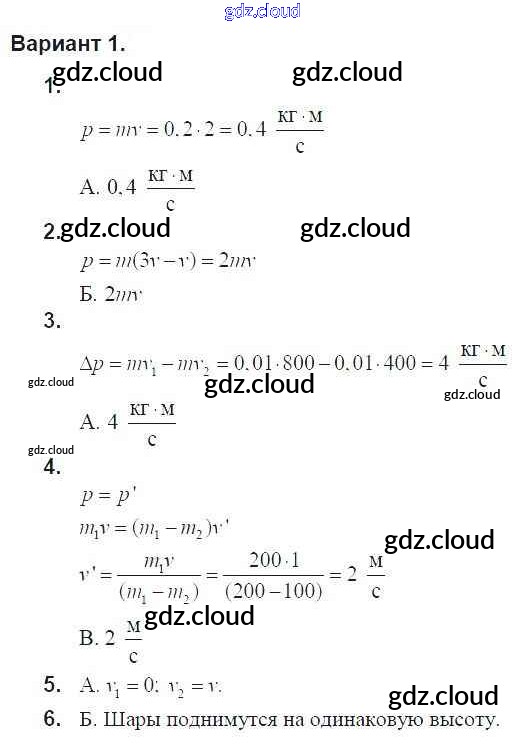 Тест 6. Варианты Ответы к Тестам для самоконтроля по Физике 9 класс Дидактические материалы Марон УМК Дрофа