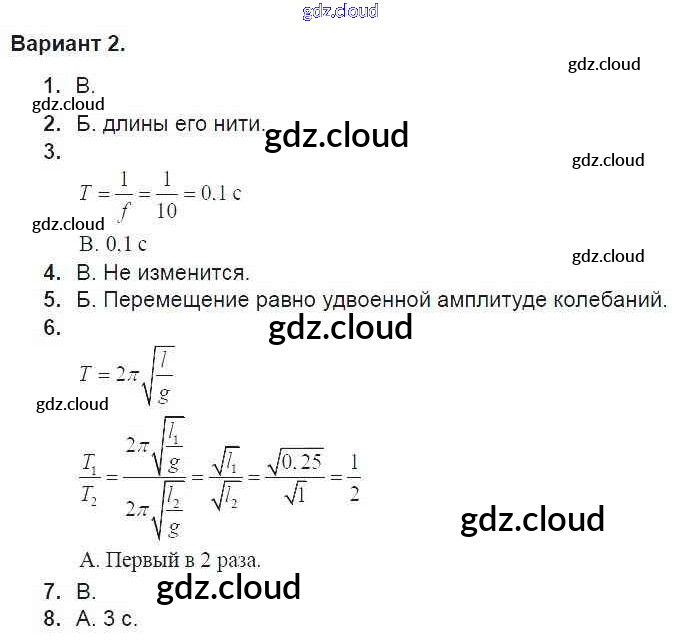 Тест 7. Варианты Ответы к Тестам для самоконтроля по Физике 9 класс Дидактические материалы Марон УМК Дрофа