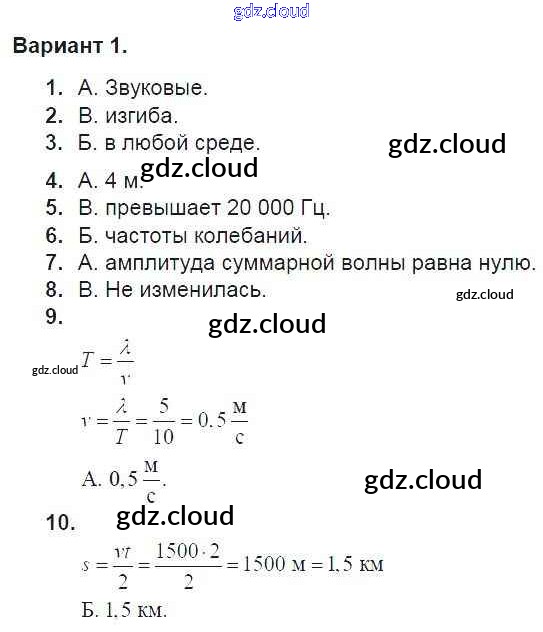 Тест 8. Варианты Ответы к Тестам для самоконтроля по Физике 9 класс Дидактические материалы Марон УМК Дрофа