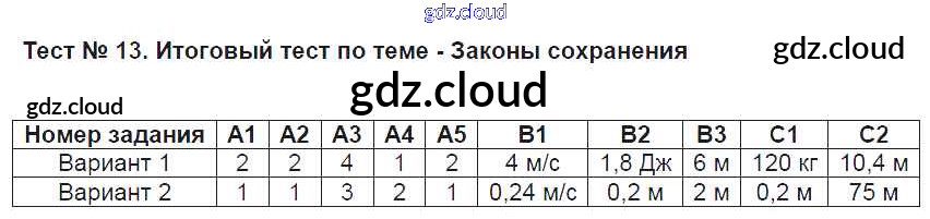 Ответы к тестам по Физике 9 класс Контрольно-измерительные материалы (КИМ) Лозовенко ВАКО