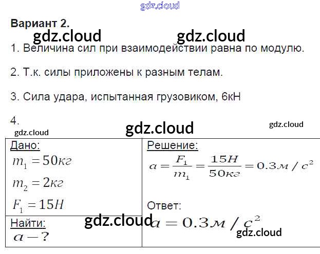 Ответ на задание 2 Контрольные и самостоятельные работы Физика за 9 (девятый) класс Громцева УМК 2017