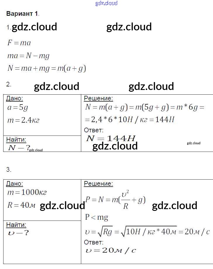 СР-20. Варианты Ответы к самостоятельным работам по Физике 9 класс Контрольные и самостоятельные работы Громцева УМК Экзамен