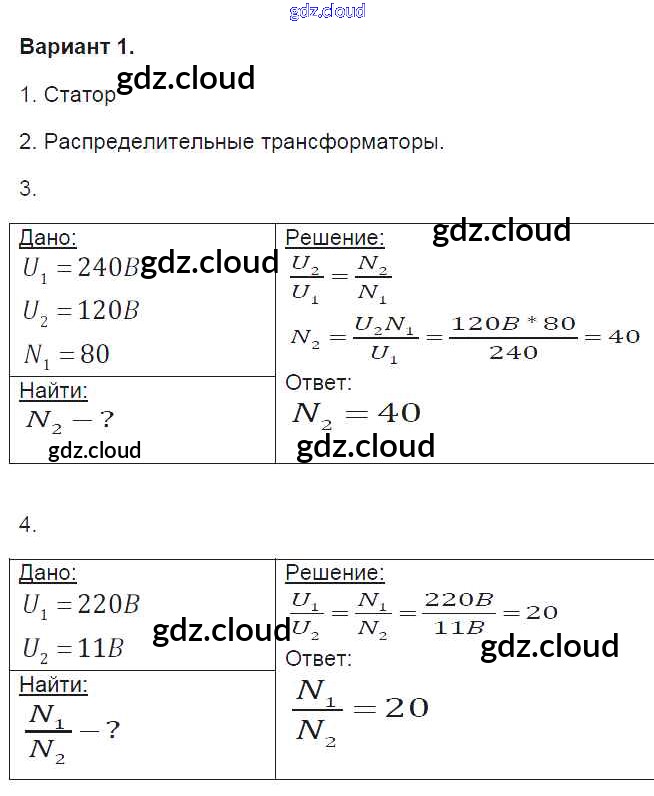 Ответ на задание 1 Контрольные и самостоятельные работы Физика за 9 (девятый) класс Громцева УМК 2017