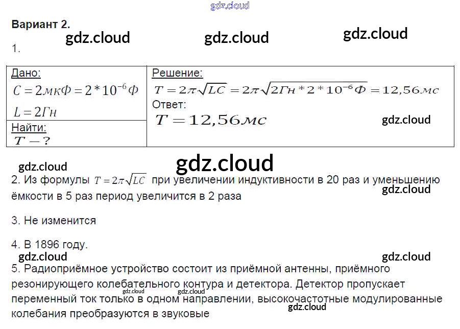 Ответ на задание 2 Контрольные и самостоятельные работы Физика за 9 (девятый) класс Громцева УМК 2017