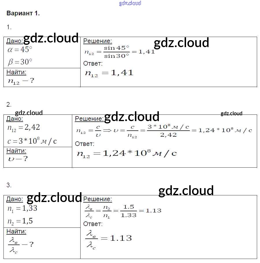 Ответ на задание 1 Контрольные и самостоятельные работы Физика за 9 (девятый) класс Громцева УМК 2017