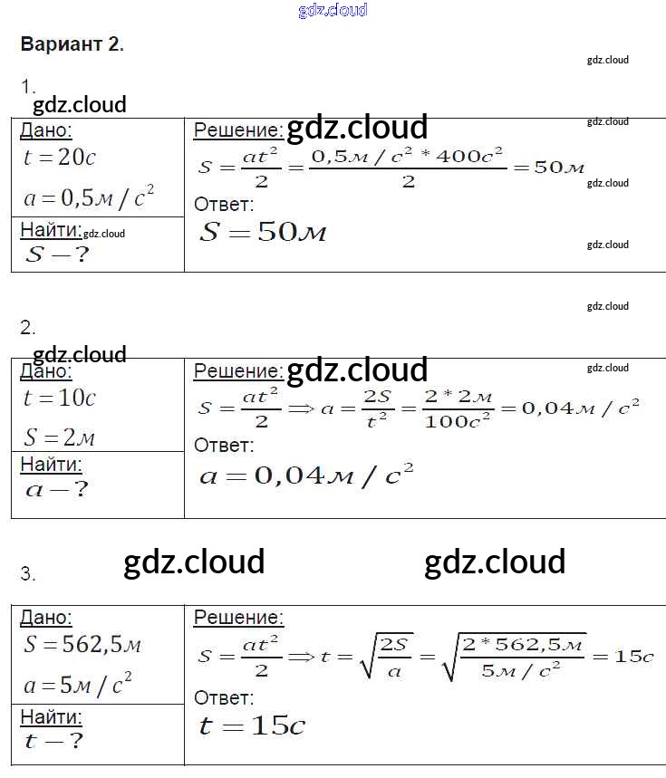 СР-8. Варианты Ответы к самостоятельным работам по Физике 9 класс Контрольные и самостоятельные работы Громцева УМК Экзамен