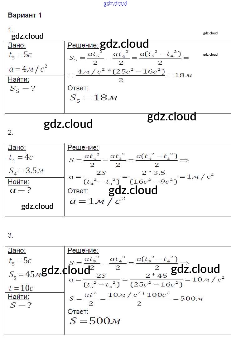 СР-9. Варианты Ответы к самостоятельным работам по Физике 9 класс Контрольные и самостоятельные работы Громцева УМК Экзамен