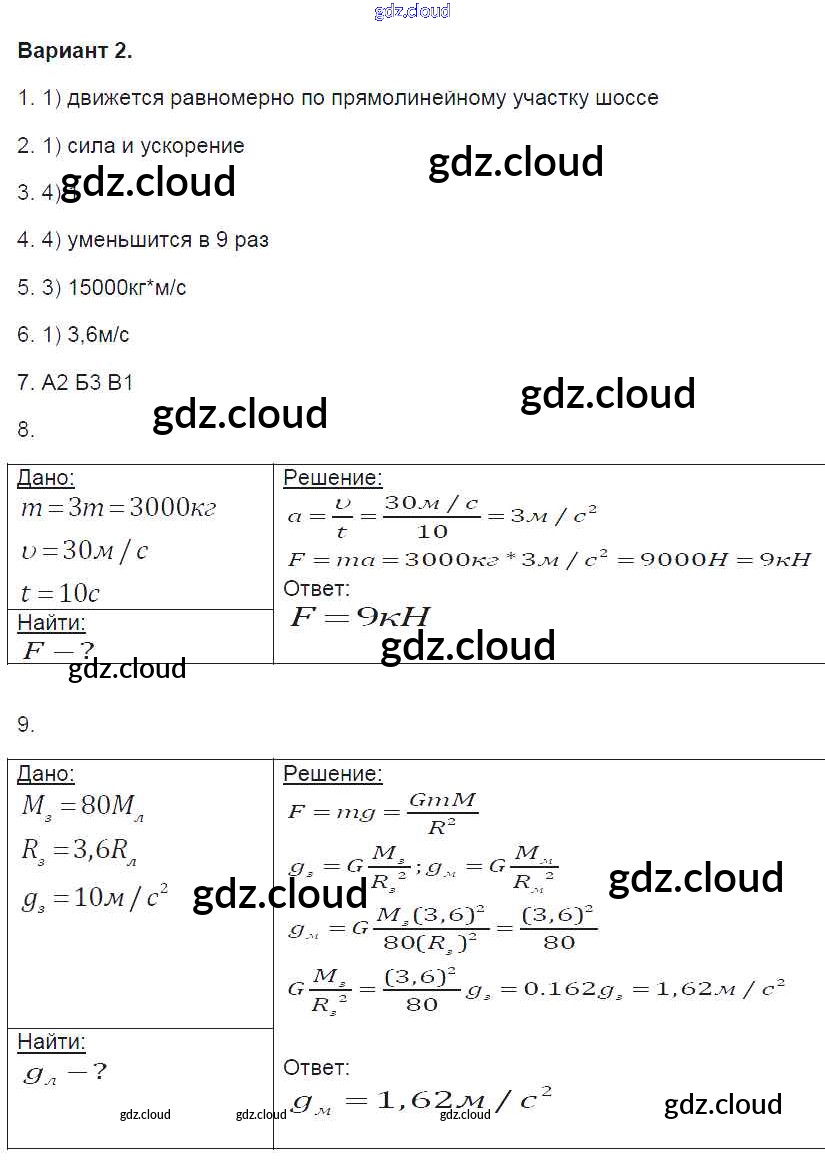 Ответ на задание 2 Контрольные и самостоятельные работы Физика за 9 (девятый) класс Громцева УМК 2017