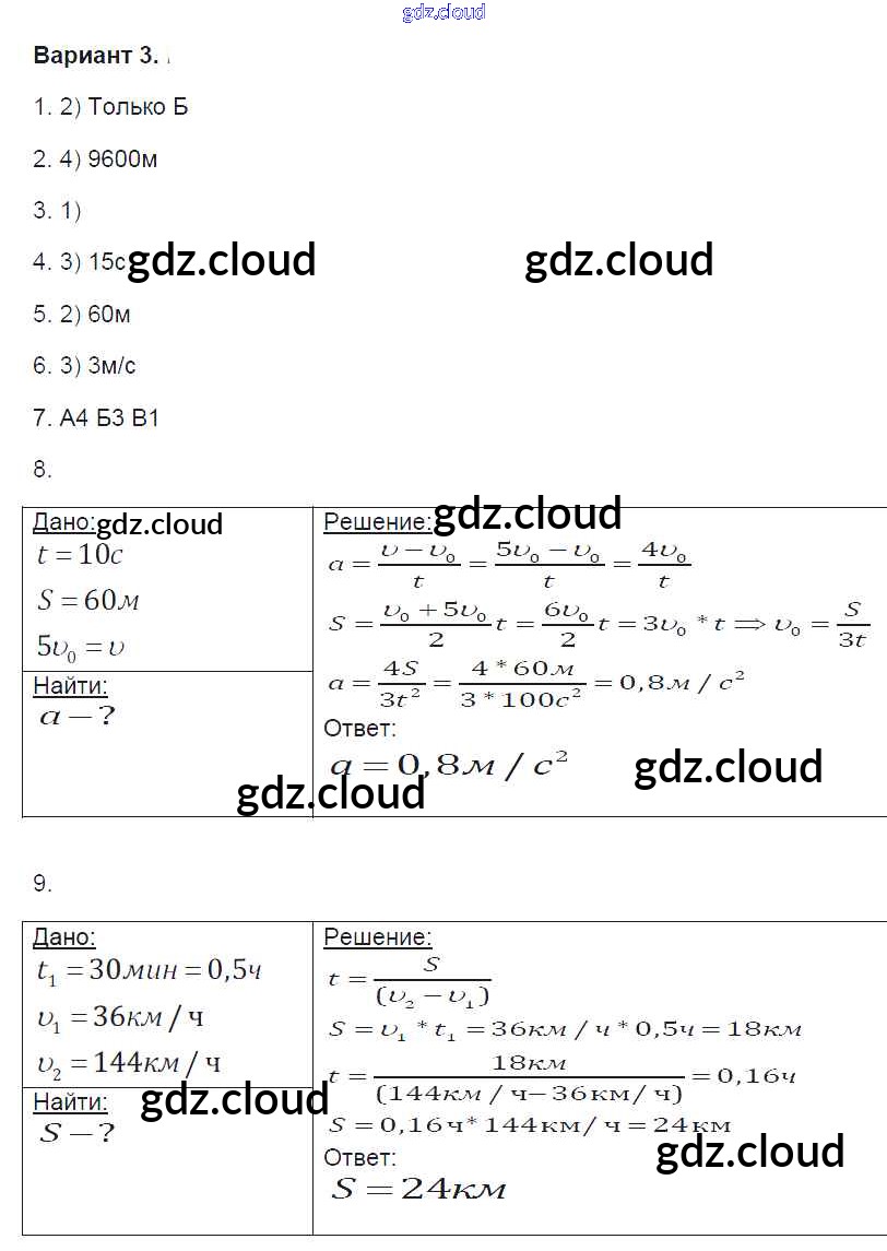2. Варианты Глава 1 по Физике 9 класс Контрольные и самостоятельные работы Громцева УМК Экзамен