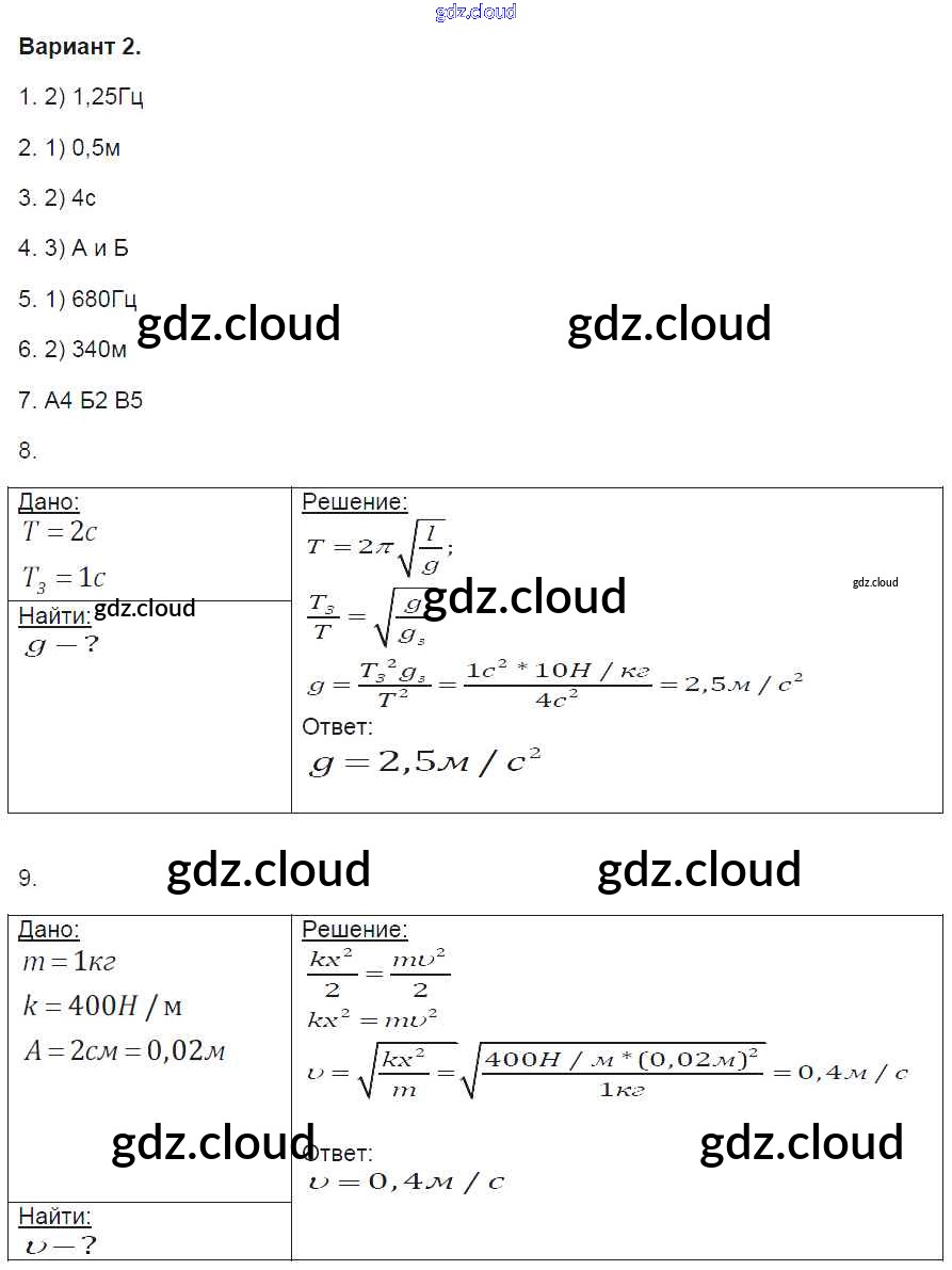 Глава 2. Варианты Ответы к контрольным работам по Физике 9 класс Контрольные и самостоятельные работы Громцева УМК Экзамен